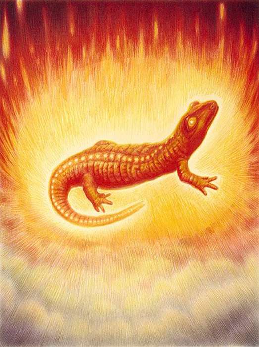 The Dragon kills the woman, and she kills it, & together they bathe in the blood.