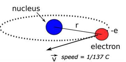 r0 is the radius of the electron orbit ħ is the reduced Planck constant me is the electron mass c is the speed of light α is the fine structure constant Because the radius of the atom depends on the inverse of the fine structure constant α, then a small number for the fine structure constant gives us a large radius. There is so much space in an atom that if you make a golf ball the size of the nucleus in an atom, the electrons would be 1.5 miles (2.5 km) away. The large distance of the electrons from the nucleus allows for an easy exchange of electrons with other atoms so that atoms can bond with each other (chemistry) and form molecules, and thus eventually lead to to life forms.