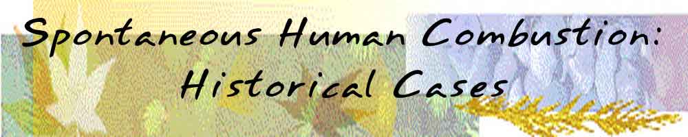 Some cases mentioned in The Boston Medical and Surgical Journal, 1836 On Spontaneous Combustion — From an Essay Read at the Last Annual Meeting of the Med. Society of Tennessee JAMES OVERTON, M.D. Boston Med Surg J 1835 (in The Boston Medical and Surgical Journal, Volumes 13-14, 1836)