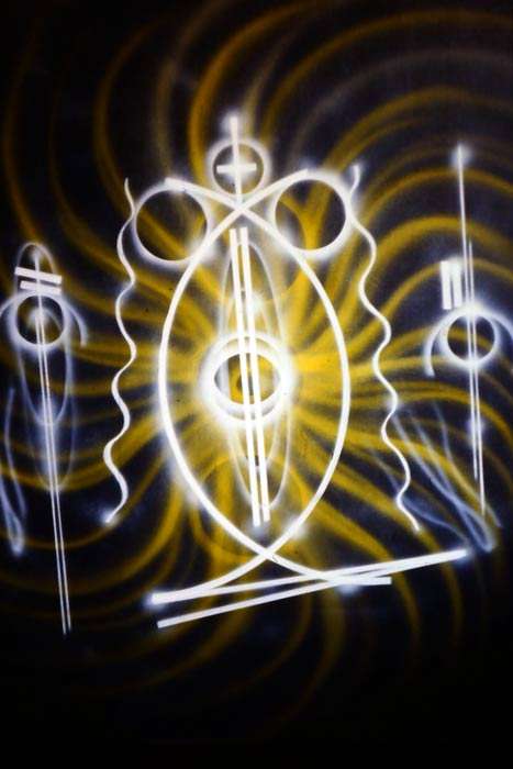 The core of the light-sound beings is the brilliant white light. It is highly structured, strongly geometrical, and often some symmetry is present. Lines, circles, half circles, short and long lines, angled or perpendicular, are harmoniously interwoven into an entity that appears to us as abstract. But it is not abstract as for example in a Kadinski painting. When I look at one of Joska Soos's paintings I can see and feel the being in it, and the power that emanates from it. However, some people cannot see any further than the paint on the canvas of his paintings. They only see abstract art, not the beings themselves. I guess your inner 'spiritual door' must be open, or otherwise you can not make a connection with those beings. |