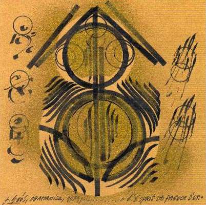 Paintings on canvas and paper by the Hungarian shaman Joska Soos, depicting light-sound beings, as directly perceived by his inner vision. Joska Soos was also interested in Buddhism. On this page are paintings and drawings of Tara, and of Buddhist llama's. The first two are Tara paintings from a series of twelve Tara's, according to the twelve colors. Joska Soos explained that there are twelve Tara's according to the twelve colors. The twelve colors are: red, orange, yellow, green, blue, indigo, violet, black, white, silver, gold and rainbow. Tara is a female Bodhisattva in Mahayana Buddhism who appears as a female Buddha in Vajrayana Buddhism. She is known as the "mother of liberation", and represents the virtues of success in work and achievements. He had also visions of Christ or Christ-like beings. In his drawings, black lines represents brilliant white light. |