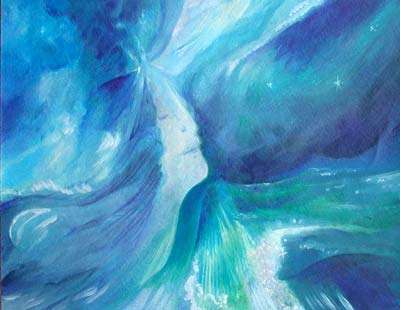 Acrylic on watercolor paper, 18 x 24. Painted right after the new year, 2001. an in-breath of soul force, the water, and inner light.