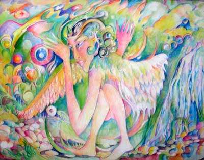 ![]() FERN FOREST FAIRIES A continuation of the theme of the previous pastel, involvement in the physical sexual energies leading to conceiving a child. |